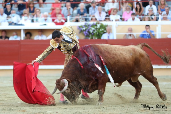 Domingo 5 de septiembre de 2021. Plaza de toros de Bayona (Francia). 6 Toros 6, de Garcigrande y Domingo Hernández Martín para Julián López «El Juli«, ovación tras aviso y 2 orejas; Paco Ureña, ovación tras aviso y ovación y Juan Leal, oreja y 2 orejas.