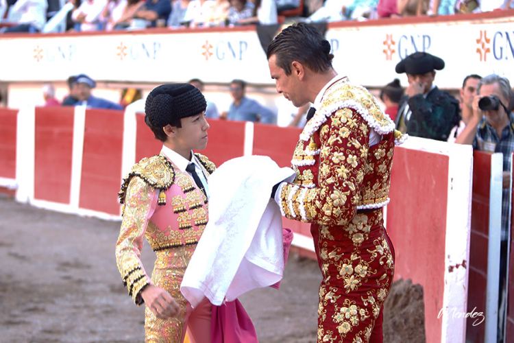 Restablecido de su malestar digestivo, el chaval salmantino Marco Pérez, de 15 años de edad, recibió a su primero, soso, pero, toreable, con un farol de rodillas y, de pie, instrumentar tersas verónicas. Lo llevó al caballo por rítmicas chicuelinas caminándole y mejor quitó por chicuelinas. Con la tela escarlata, comenzó vaciando por alto, seguido de derechazos estéticos y aguantando en tres series. En un momento de gozo torero se vio en apuros y supo resolver. Mas derechazos y naturales valientes. Aliñó y dejó una estocada casi entera entre gritos de ¡torero! El astado no dobló, falló al descabellar, le sonaron los tres avisos, se le fue vivo a los corrales y, el chaval enrabietado, se metió al callejón en medio de una gran ovación.