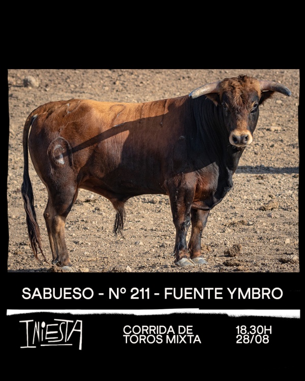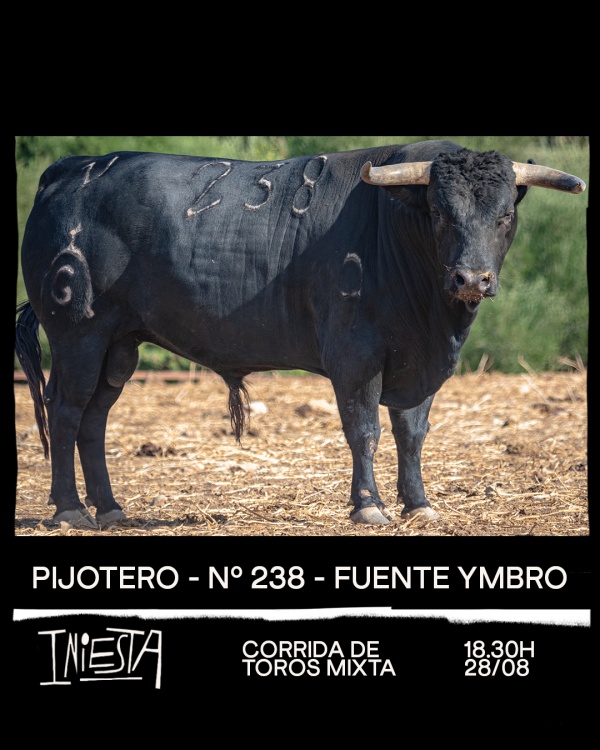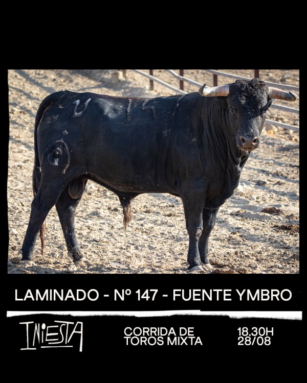 La materia prima, que les mostramos, viene desde San José del Valle, en Cádiz, donde pasta la afamada ganadería de Fuente Ymbro, en esta arrolladora temporada en la cual está triunfando en los cosos de todo el orbe taurino, y acude a Iniesta con 3 toros y 3 utreros para la figura del toreo, el matador de toros Paco Ureña, y el novillero con picadores local, Alejandro Peñaranda, que acude a la cita en su tierra natal con un pleno de puertas grandes en sus actuaciones esta temporada, habiendo cortado un total de 18 orejas y 1 rabo en 6 novilladas.