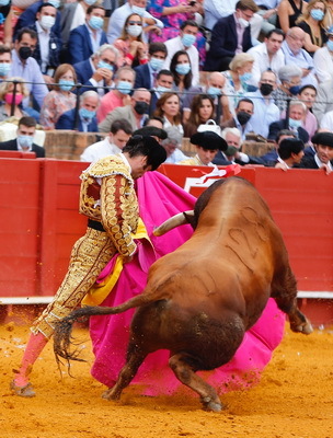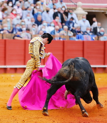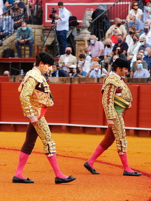 Viernes 24 de septiembre de 2021. Plaza de toros de Real Maestranza de Caballería de Sevilla (Sevilla). 6 Toros 6, de Juan Pedro Domecq para Morante de la Puebla, silencio, silencio y ovación con saludos y Juan Ortega, ovación con saludos, silencio y oreja.