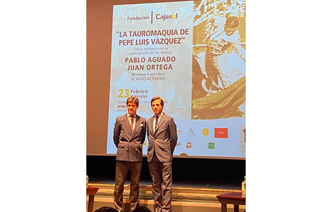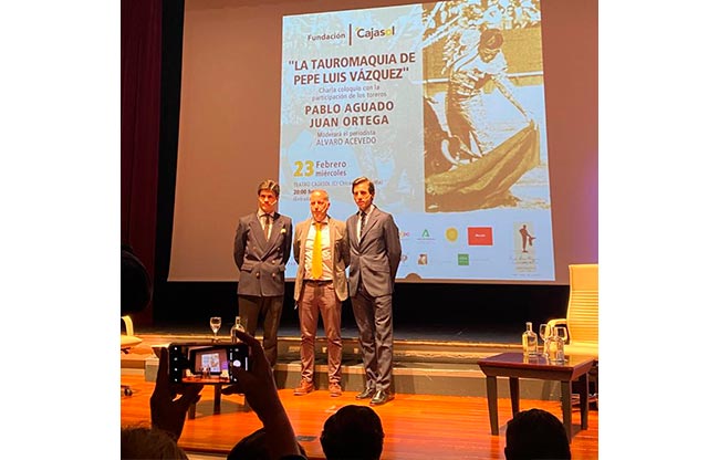 En la Fundación Cajasol (Sevilla) alternaron en mano a mano Pablo Aguado y Juan Ortega, actuando de sobresaliente y como moderador nuestro compañero Álvaro Acevedo, sabiéndose los hoy anunciados responsables de promulgar y defender un legado tan sevillano como arrabalero: el de Pepe Luis Vázquez.