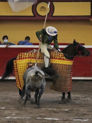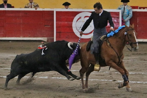 Incidencias: Lucimiento en la pega de los forcados “Amadores de Teziutlán” por parte del forcado de cara de nombre Iván Macgregor. El tercer toro de la tarde fue premiado con el arrastre lento.