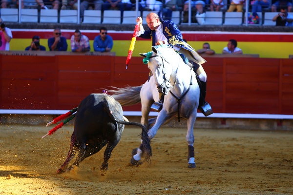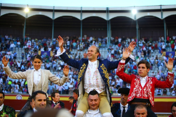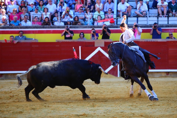 Lea Vicens paseó una de cada oponente. En su primero, con «Fermín» sufrió una aparatosa caída. El quinto, más brusco, le complicó su labor, pero la francesa se vino arriba. Completó el cartel, Joao Telles, que desorejó al cuarto donde dio una gran lección de doma
