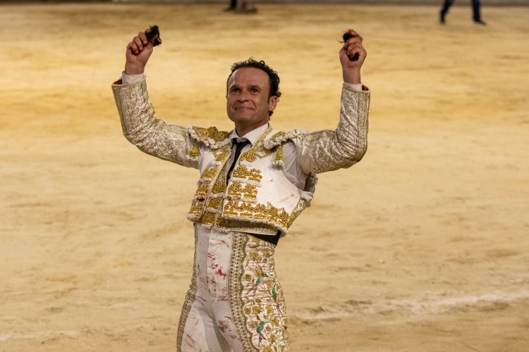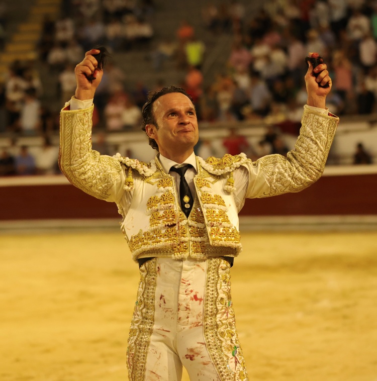 Tras una primera agarrado a ellas, se lo sacó más allá del tercio con torería. A partir de ahí, brotó un toreo relajado y con desparpajo para cuajarlo a placer. Estuvo francamente bien toreando al natural y tambié le pegó derechazos sensacionales a un ejemplar muy bondadoso. Nunca lo apretó y el toro tuvo muchísima duración. Finalmente, tras amagar con montar la espada en varias ocasiones, llegó el indulto. Recibió las dos orejas bajo los acordes de ‘El Rey’ junto al ganadero Mauricio González.