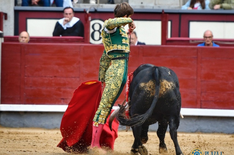 Volvió a cruzar esos pasos del miedo hasta la puerta de toriles Alejandro Chicharro para recibir al quinto a portagoyola también. Por chicuelinas, el quite de Ramírez. Comenzó el de la Escuela de Colmenar Viejo por doblones, poderoso, para coserle un cambio de mano largo y el de pecho antes de sacarlo a los medios. Luego, cuidó mucho la colocación, siempre muy cruzado, con un animal que se dejó, sin maldad, pero al que faltó clase y fondo. El más deslucido, junto al sexto, del buen encierro de Rodríguez Espioja. Pese a ello, Chicharro logró mostrar su buen sentido del temple, especialmente con la zurda, tanto en una tanda al natural mediado el trasteo como en otra, postrera, a pies juntos. El acero, cuatro pinchazos antes de una estocada corta y desprendida, volvió a ser un lastre muy complicado de superar.