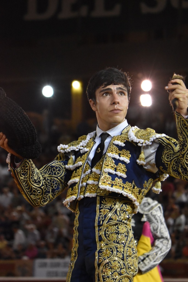 García Palacios estuvo muy entonado con el capote tanto en el recibo como en el quite, conectando con el público. Con la muleta realizó un toreo vertical e intentó mantener a base de temple a un novillo justo de fuerza. También resultó volteado sin consecuencias. Insistió hasta sacar todo el partido de su oponente en una faena de mérito y mató de estocada fulminante. Fue premiado con las dos orejas.