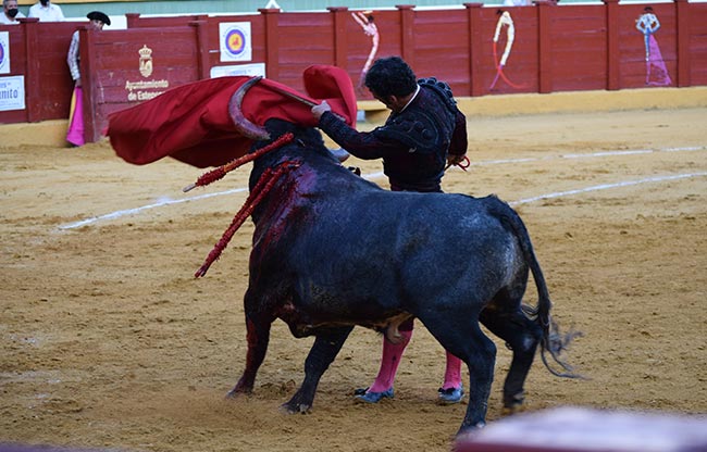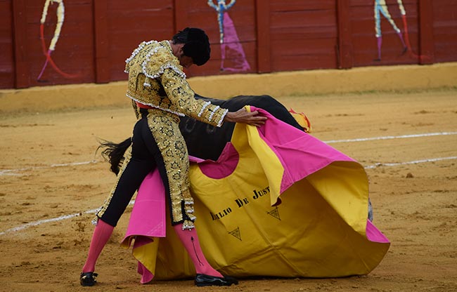 El cuatro y último de la tarde, Ballestero, número 22, no permitió el lucimiento de Emilio de Justo con la capa. Tiene poco recorrido y embiste con las manos por delante. Pica Juan Bernal, puyazo arriba pero un tanto trasero. No deja de empujar fijamente el toro en el caballo, lo hace con los riñones. Un tiempo le deja “Morenito de Arles” antes de empezar a lidiar. También en está ocasión cambia con dos pares de Justo, que posteriormente brinda al público. Dándole el pecho, con la muleta en la zurda comienza a torear en circular; pide el toro que lo lleven a una altura concreta, de lo contrario, protesta en el muletazo. En la siguiente tanda, también sobre la zurda, consigue conducir las embestidas de Ballestero en el punto ideal para que no pierda las manos y también para que no proteste. Es este uno de los mejores momentos de la faena. Poco a poco, de menos a más, construye la faena. Toreó a placer en el epílogo. Entra a matar pinchando en varias ocasiones, emborrona su actuación con el acero. Vuelta al ruedo.