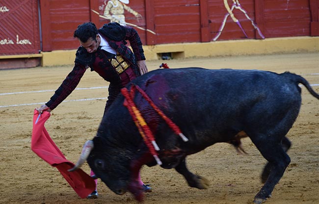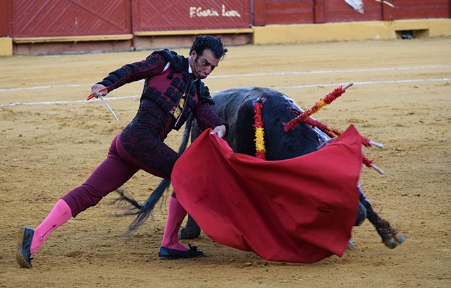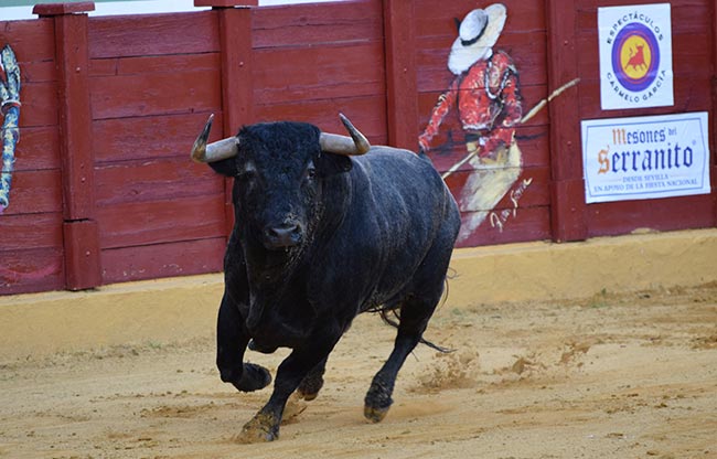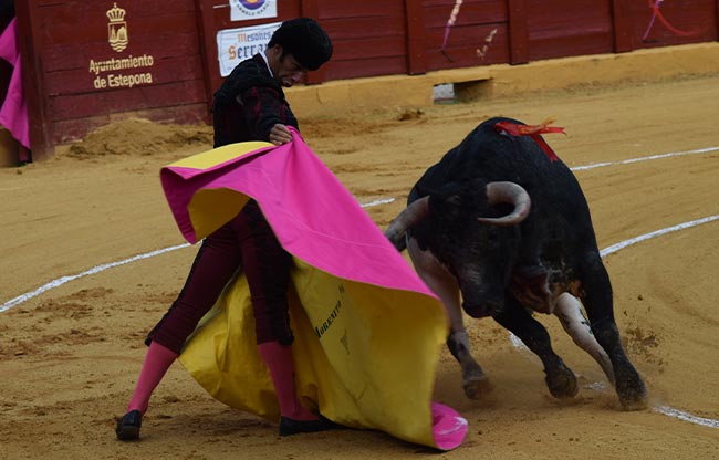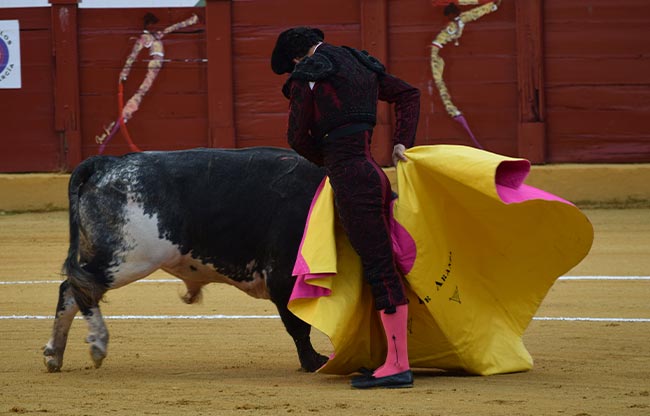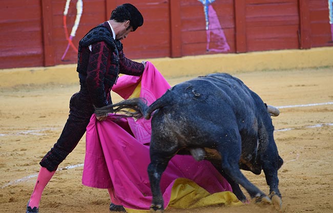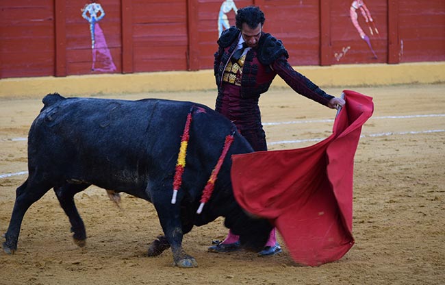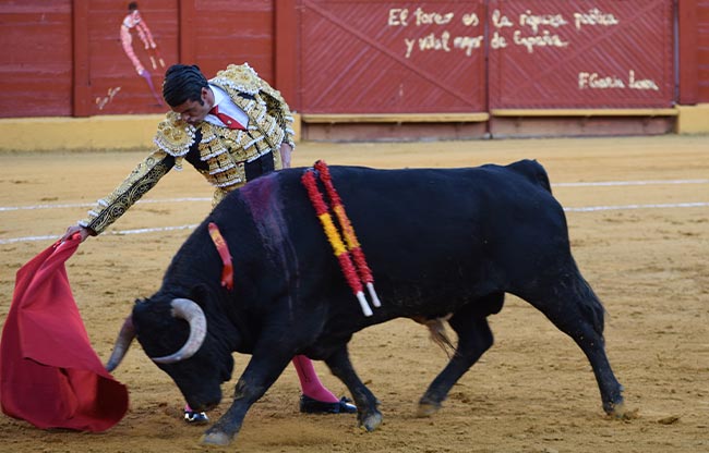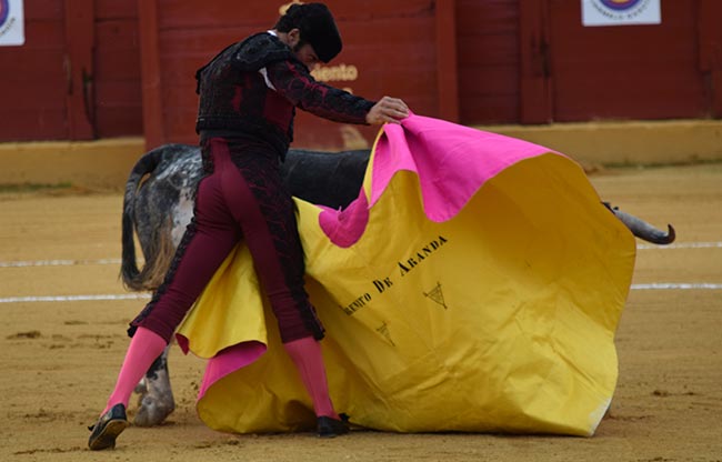 El tercero de la tarde, serio, badanudo, cárdeno bragado, de nombre Peluquín es aplaudido de salida. Un ramillete de verónicas deja Morenito en el recibo capotero. Bien lo hace el toro humillando en el capote. A continuación, largo lo deja colocado en el caballo que monta Héctor Piña. Coloca el toro la cara en el tercio de varas, y no da ni un derrote en el peto. Con mucha suavidad lo saca José Manuel Zamorano del caballo. Muy despacio y con mucho temple hace el quite, a la verónica, de Aranda, que tuvo un bonito detalle dejándole hacer el quite al sobresaliente Pepe Luis Gallego, que estuvo muy templado. Nada fácil es el de La Quinta en banderillas. Un buen par dejó Andrés Revuelta. Encastadas y exigentes son las embestidas del tercero, que Morenito conduce con mucha firmeza hasta el centro del anillo. Una vez allí, empieza el toreo en circular sobre la diestra. Lleva colocada la cara Peluquín desde el principio hasta el final del muletazo, transmiten sus embestidas. Sigue toreando el diestro burgalés sobre la diestra, rematando con la zurda con largos pases de pecho. Ya con el animal algo más parado torea al natural, deja muletazos de trazo largo. Toro exigente, con el que Morenito está a la altura. Entra a matar en la suerte contaria. Dos orejas y vuelta al ruedo a Peluquín.