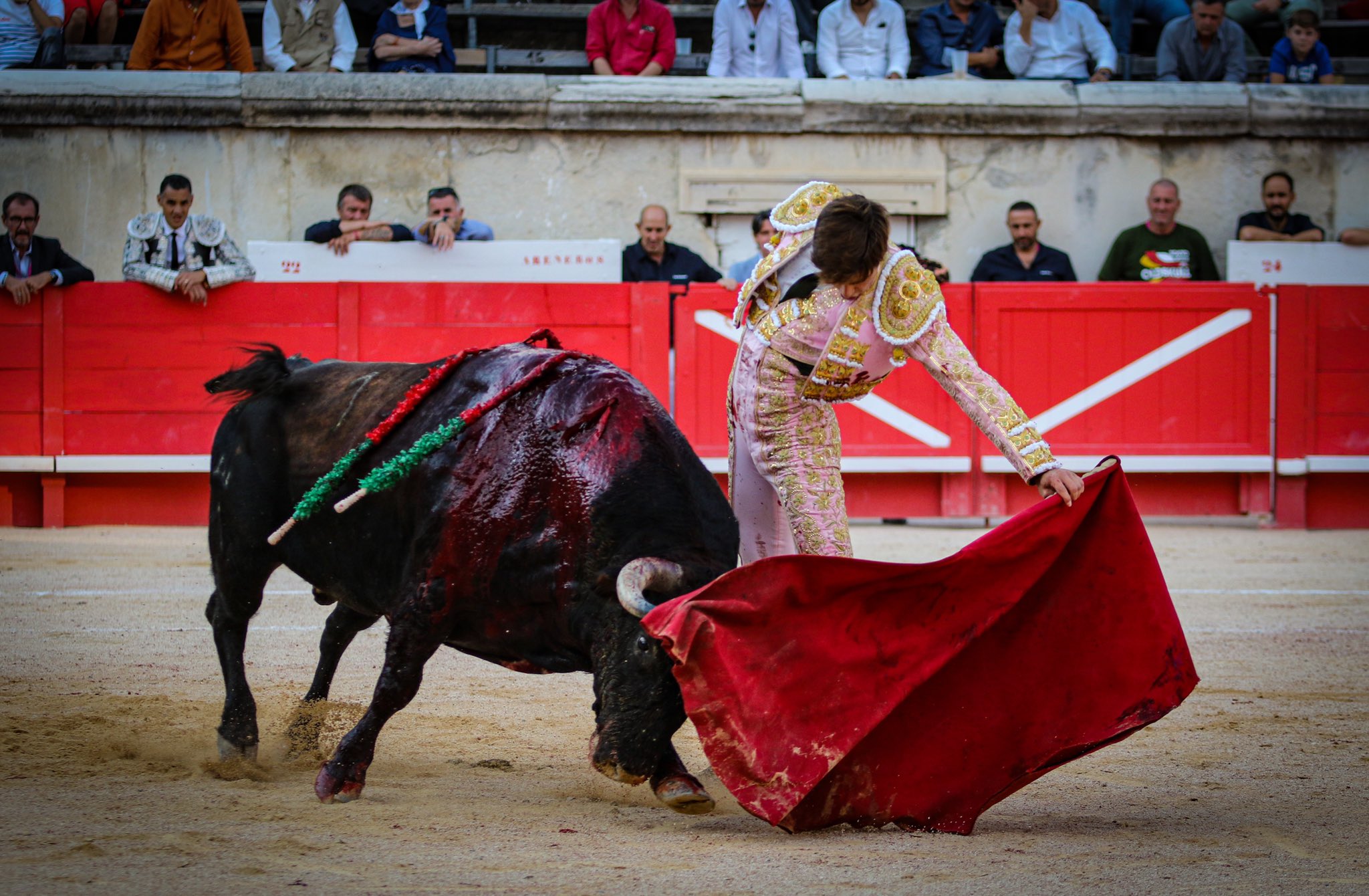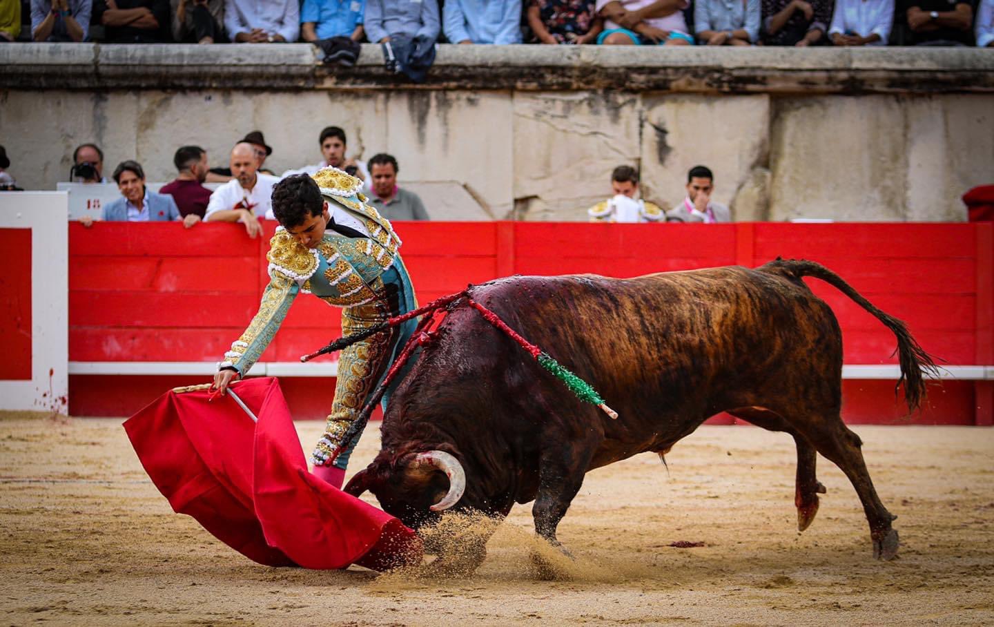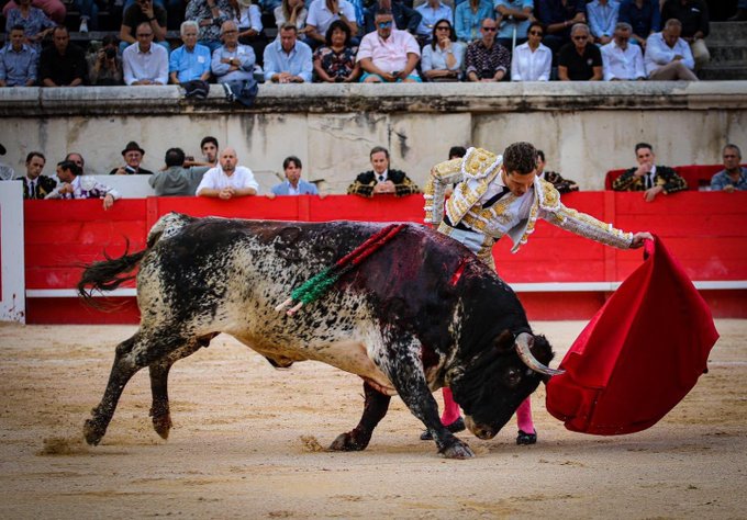Coliseo Romano de Nimes (Francia). Primera de la Feria de la Vendimia. Un tercio de entrada. Toros de Robert Margé, bien presentados y serios. El 2º, premiado con la vuelta al ruedo como el 3º. Buenos toros, salvaron la cara por el hierro galo, pues los otros cuatro fueron animales deslucidos y sin entrega, complicados para la terna.