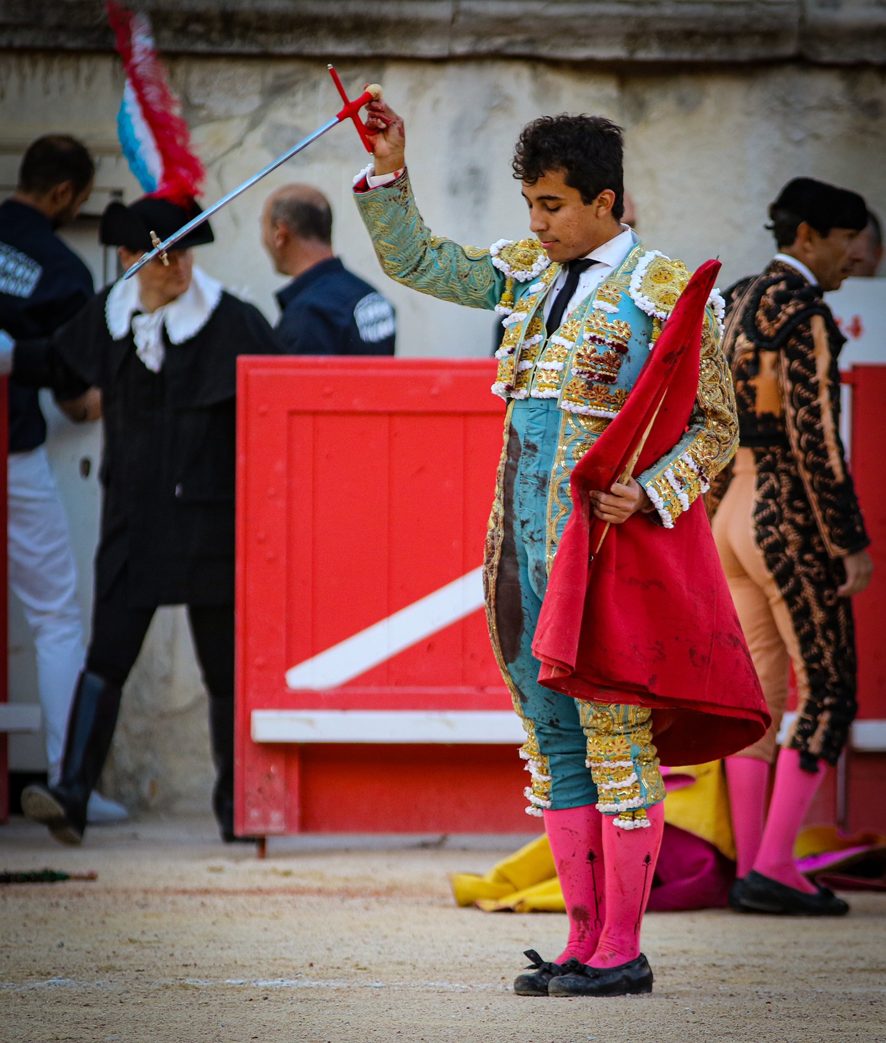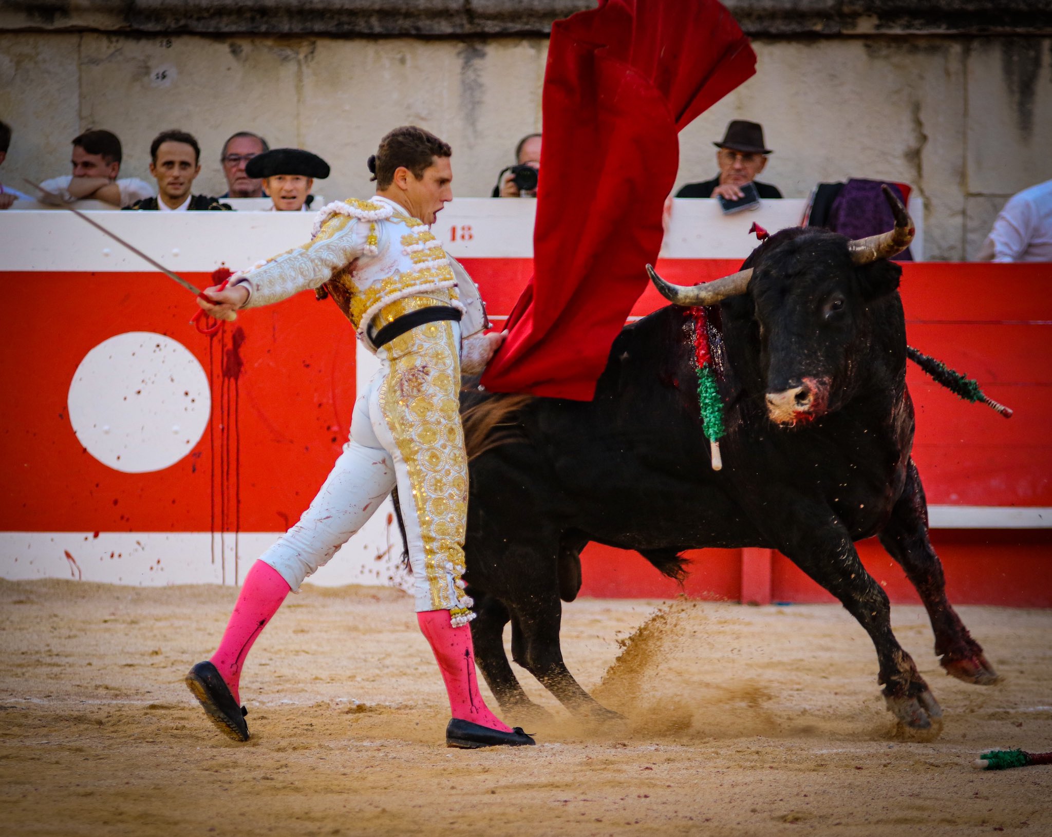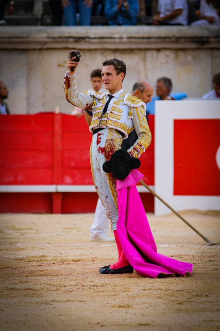 Tuvo buen tranco el tercero, toro de embestidas con ritmo y clase. El Rafi, que se hizo ovacionar con el percal, se pudo gustar en una faena en la que corrió la mano por ambos pitones con enjundia. Tras un comienzo más poderoso, firmó un trasteo lleno de suavidad y relajo -el toro, con fondo y clase respondió- que caló de inicio a fin en el tendido del Coliseo Romano de Nimes. No marró con el acero y paseó las dos orejas. Vuelta al ruedo para el toro.
