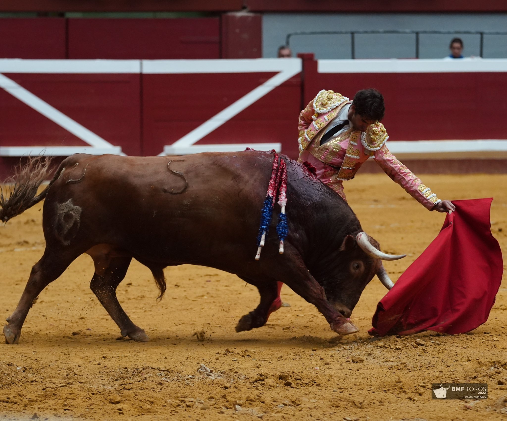 Cayetano (de rosa y oro), fuerte ovación y oreja.