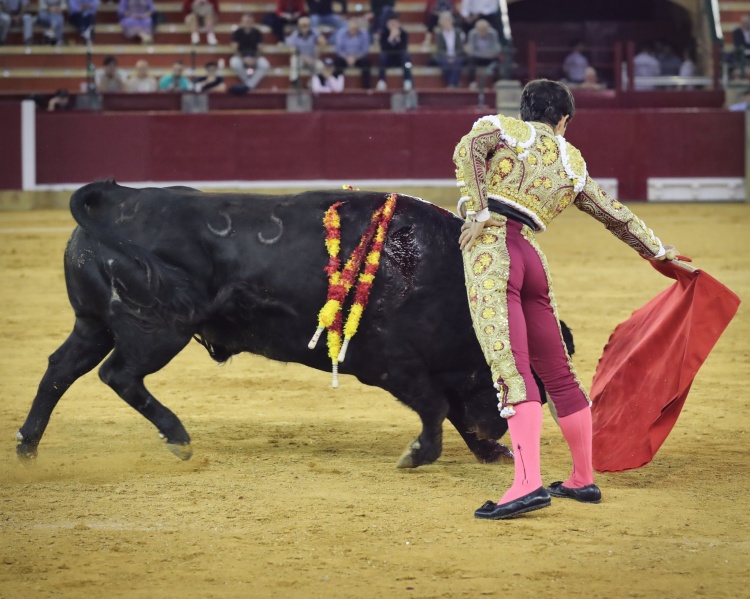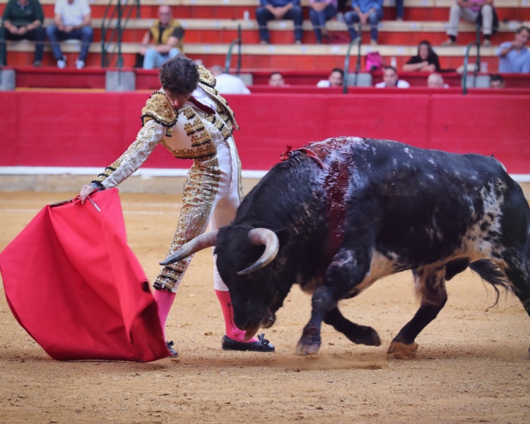 El cuarto llegó al último tercio mermado de facultades al pegarse una voltereta durante el recibo de Santana Claros. El malagueño cimentó una faena de menos a más, dejando varias series notables por el pitón derecho.
